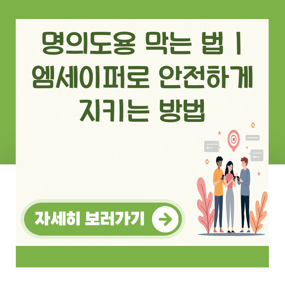 명의도용은 누구에게나 발생할 수 있는 위험입니다. Msafer 명의도용방지 서비스를 통해 자신의 소중한 정보를 안전하게 지키는 것이 중요합니다. 지금 바로 Msafer에 가입하여 명의도용으로부터 안전한 디지털 생활을 누리세요. 경험을 댓글로 공유해 주세요!